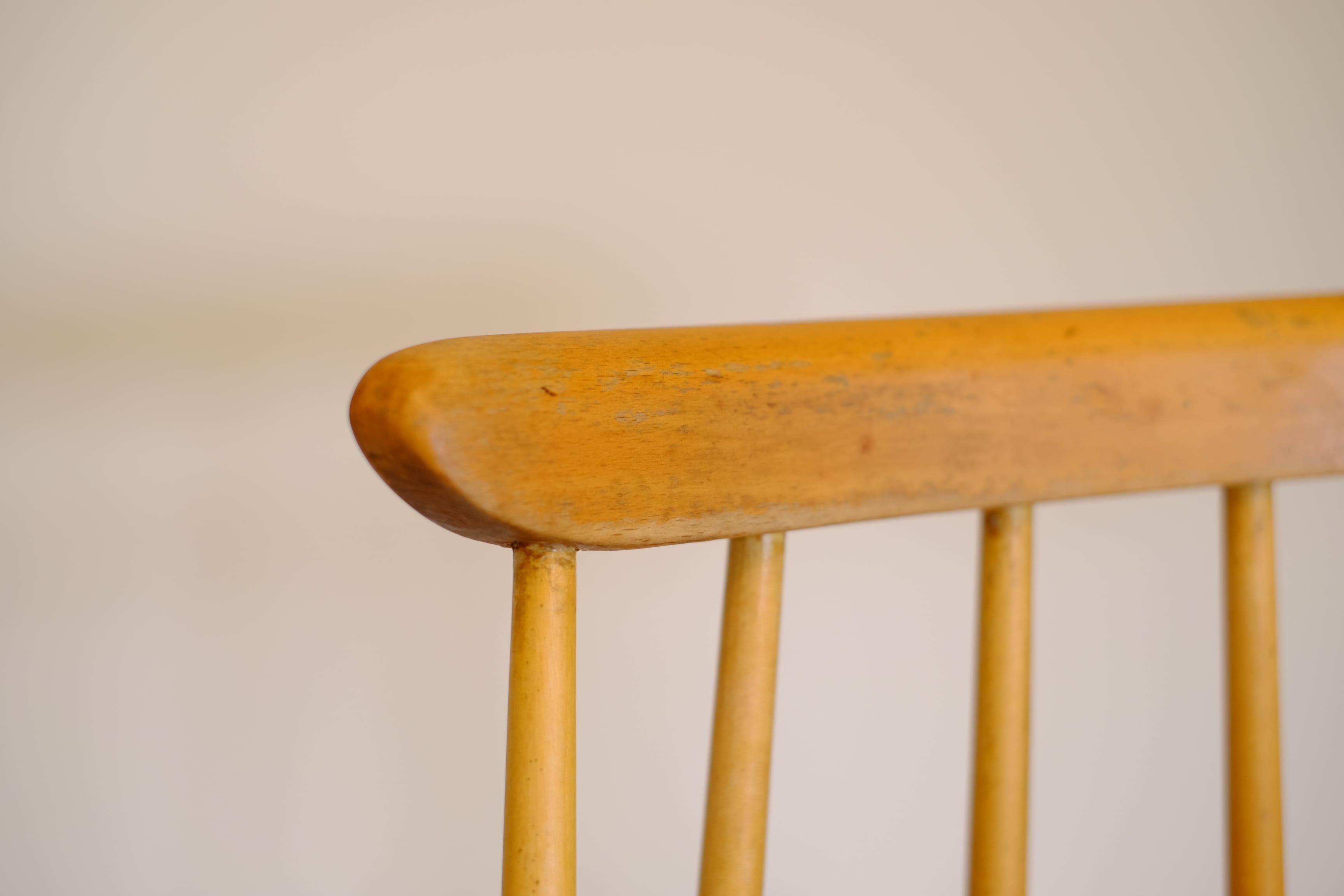 背中のスポークが4本のものや7本のものなどがありますが、こちらは6本スポークのデザインですっきりした印象です。ビーチとチークを組み合わせて作られたナチュラルカラーとなり、様々なテーブルやデスクなどにマッチするでしょう。