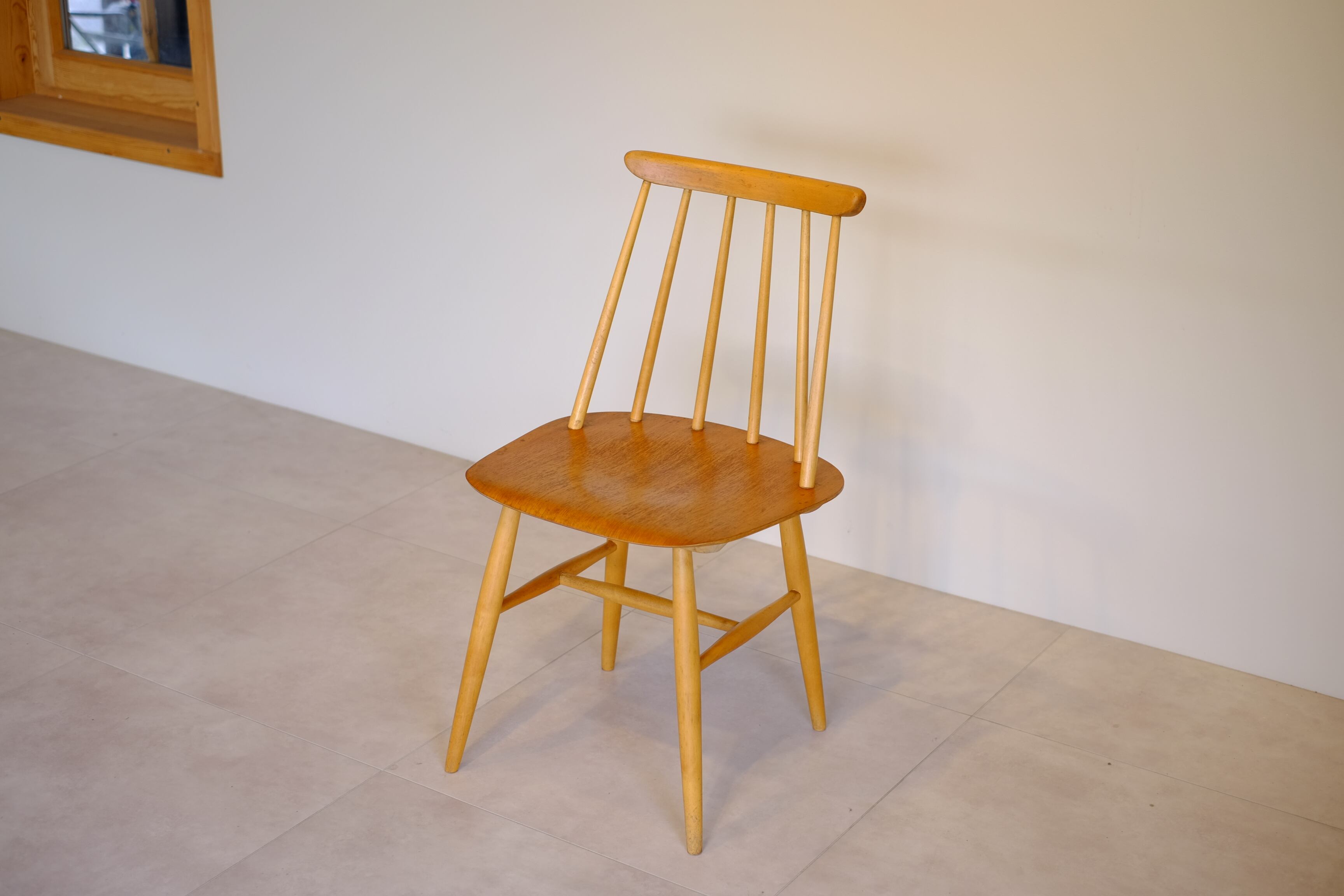 Ilmari Tapiovaara(イルマリ タピオヴァーラ)デザイン、Edsby Verken(エズビー ヴァーケン)製のファネットチェア 6S(6本スポーク)です。