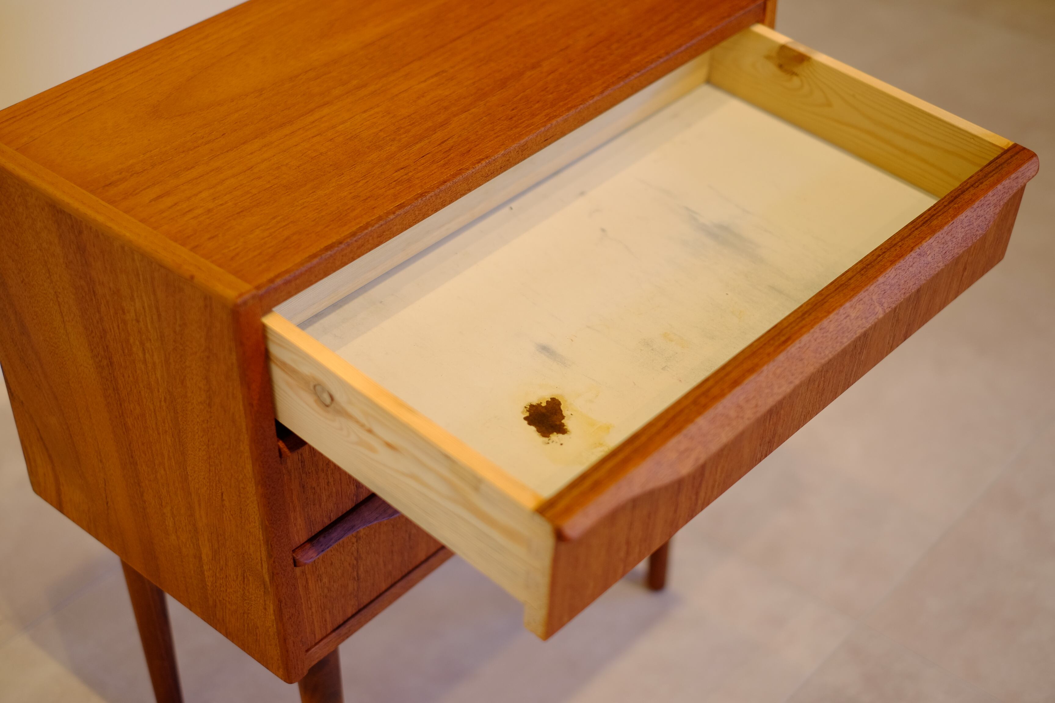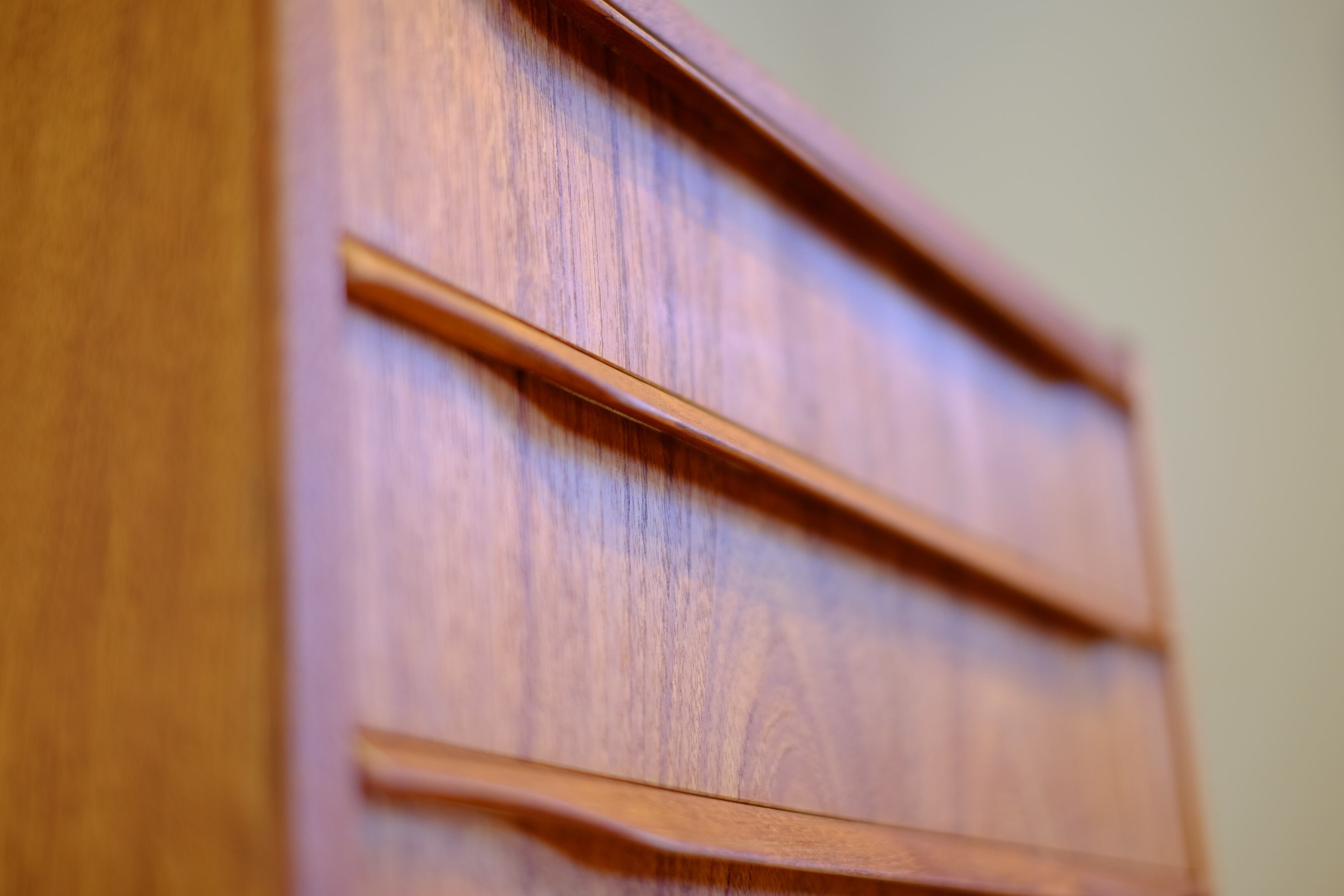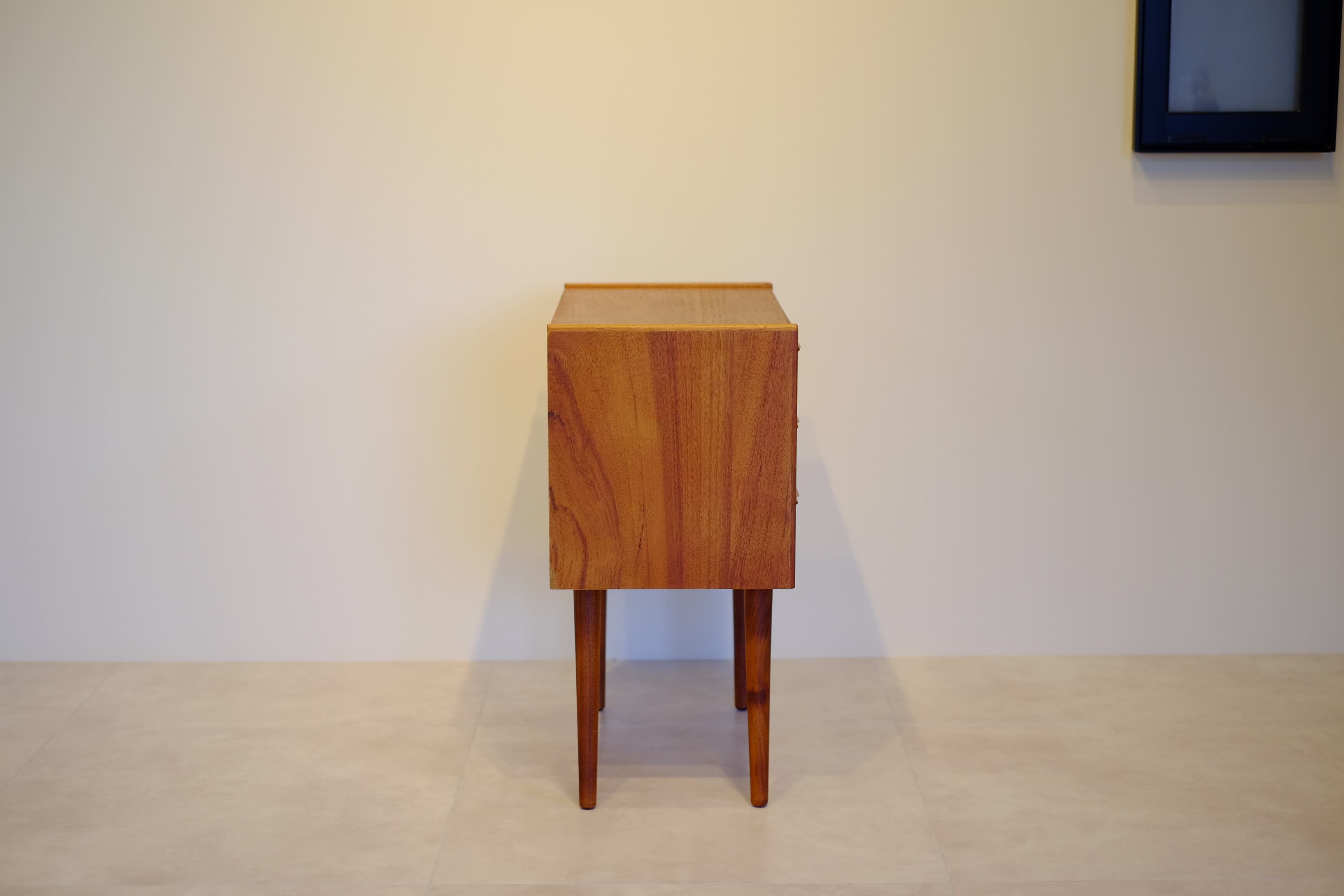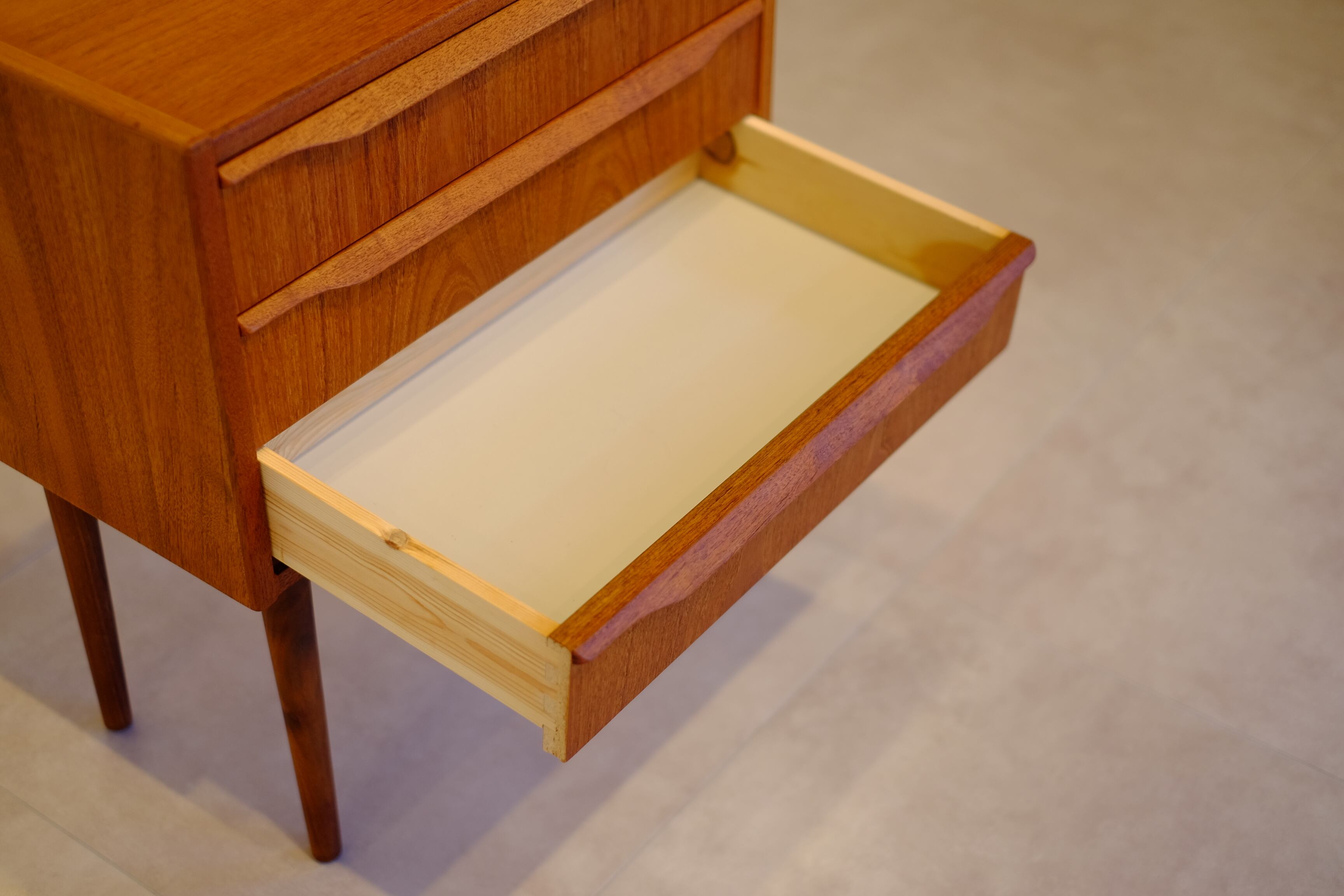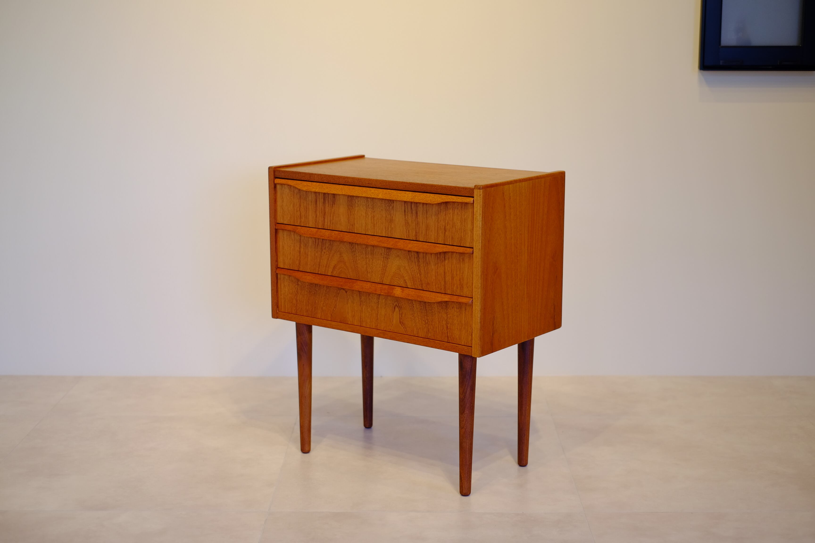 デザイナーの名前こそ付いていませんが、これぞ北欧ヴィンテージと言えるほど美しい取っ手の3段チェスト。