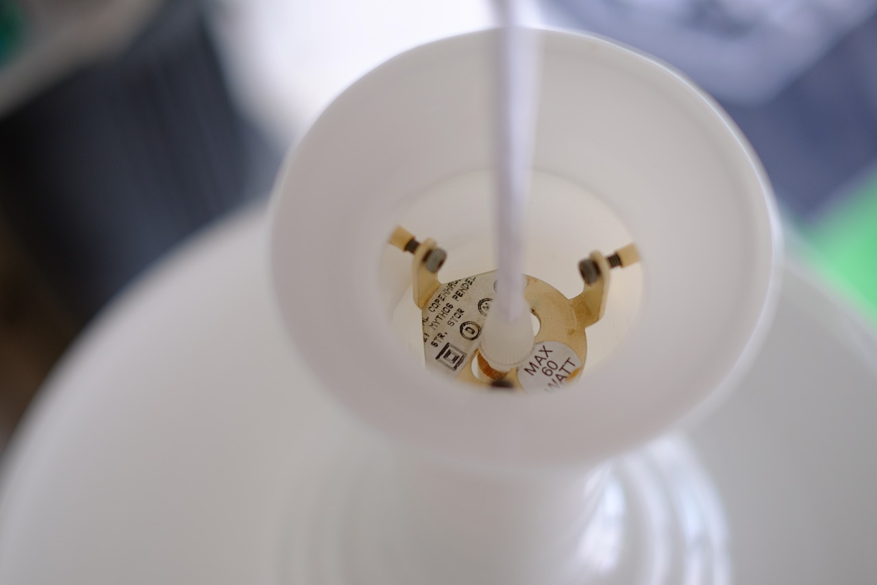 コードや照明器具本体は、安心できる国内産の新品に交換してあります。ソケットは陶器製で北欧ヴィンテージに馴染むものを選定しています。