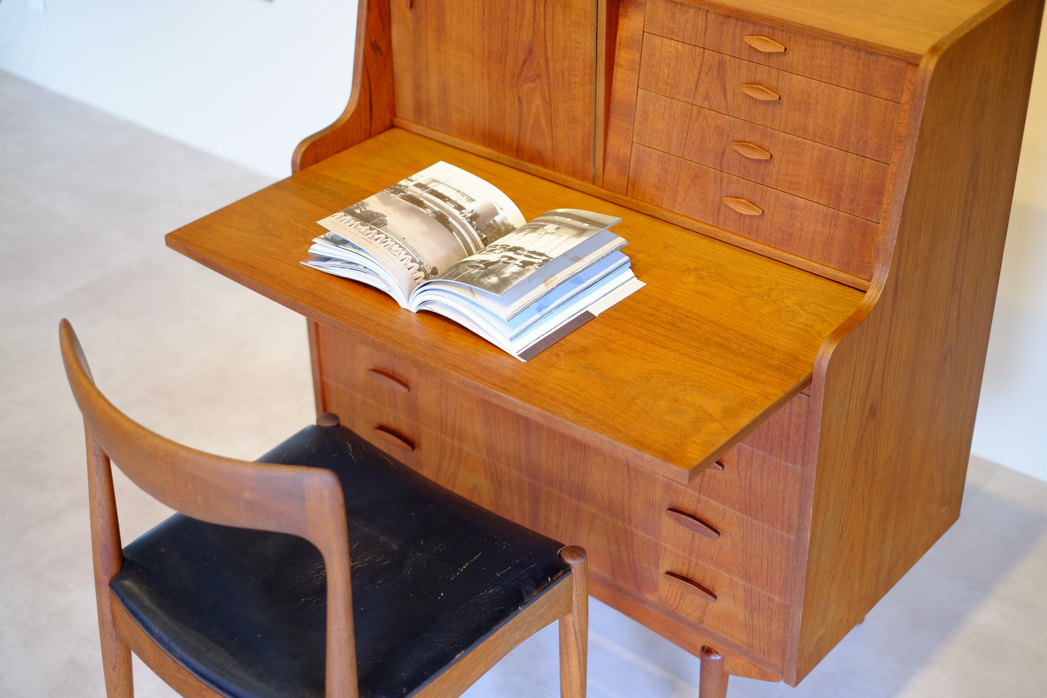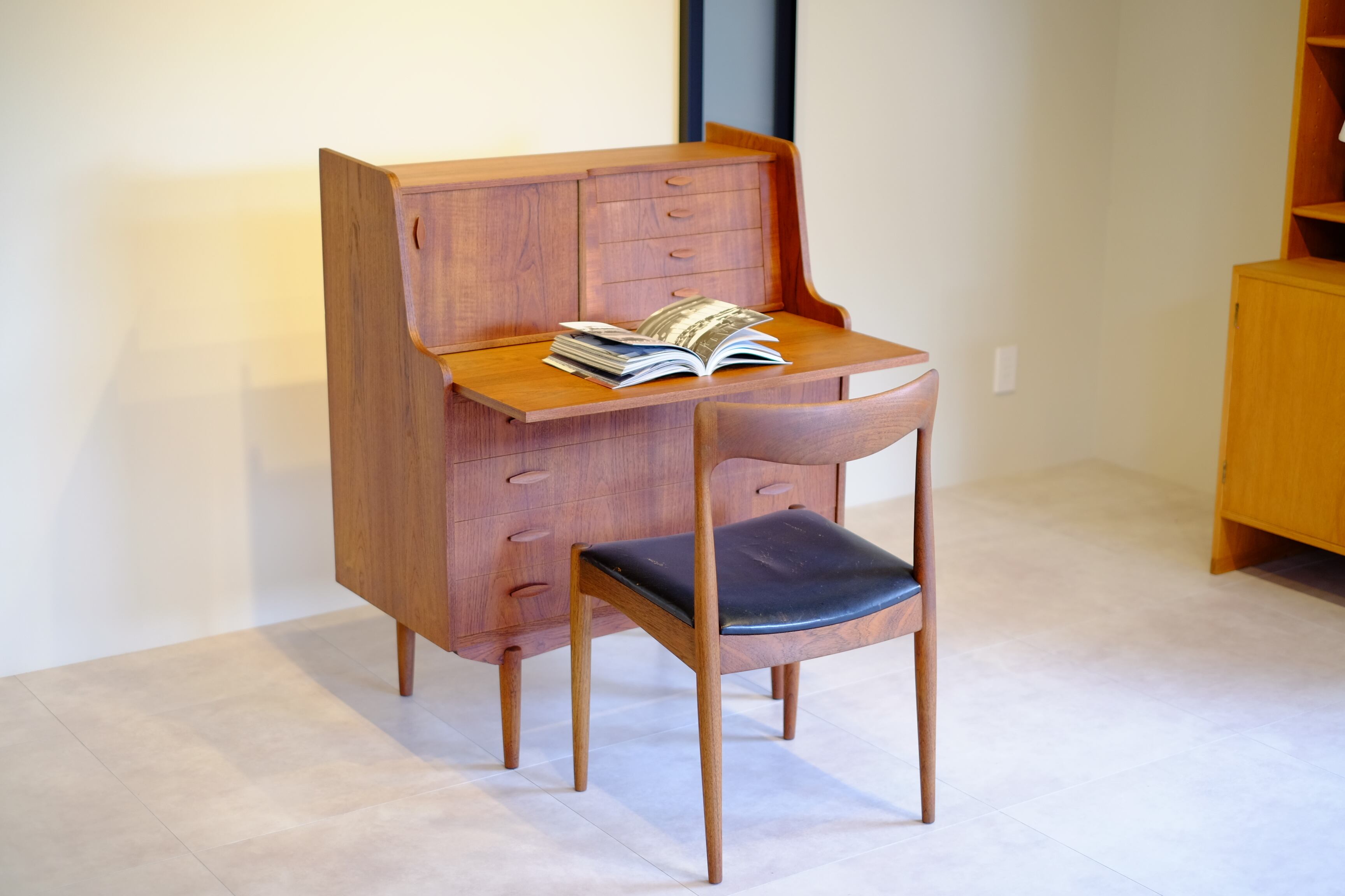 ひし形の取っ手がかわいらしいライティングビューローです。