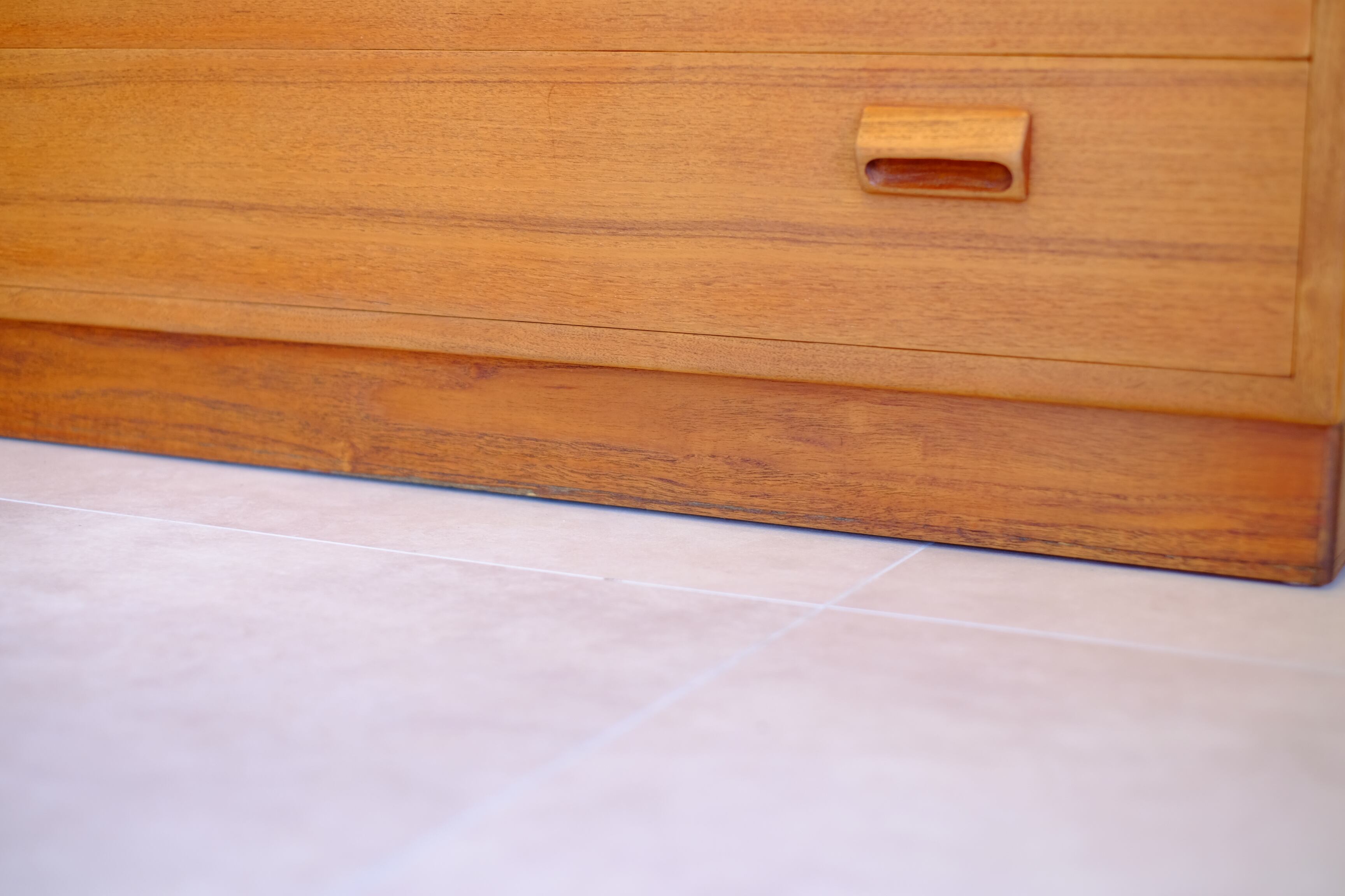 当時、様々なバリエーションで組み合わせて使うことができた一連のシリーズにおいて、外すことのできない主役である4段チェストです。このシリーズの魅力は何といっても程よいサイズ感。日本のリビングにピシッと収まるサイズです。