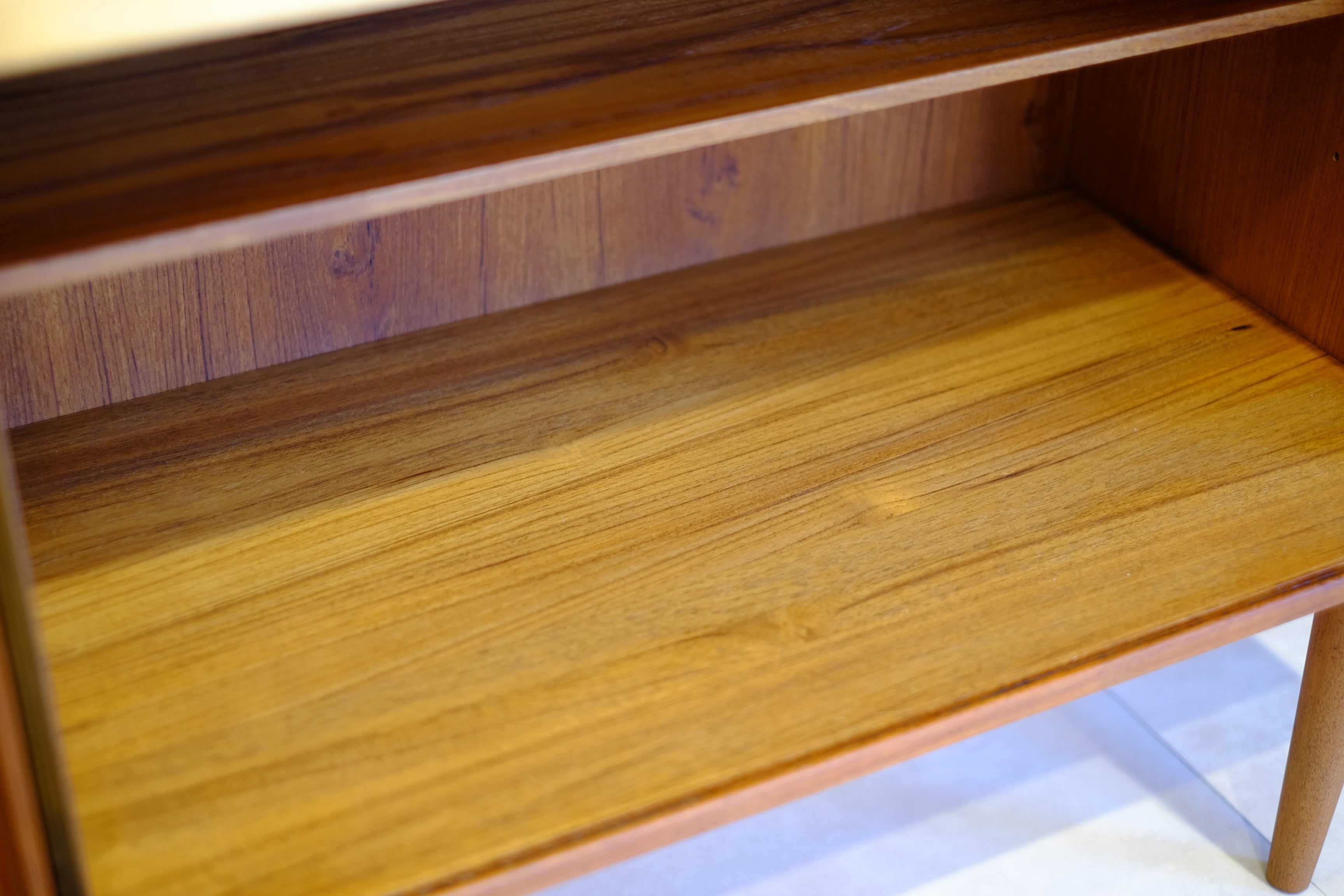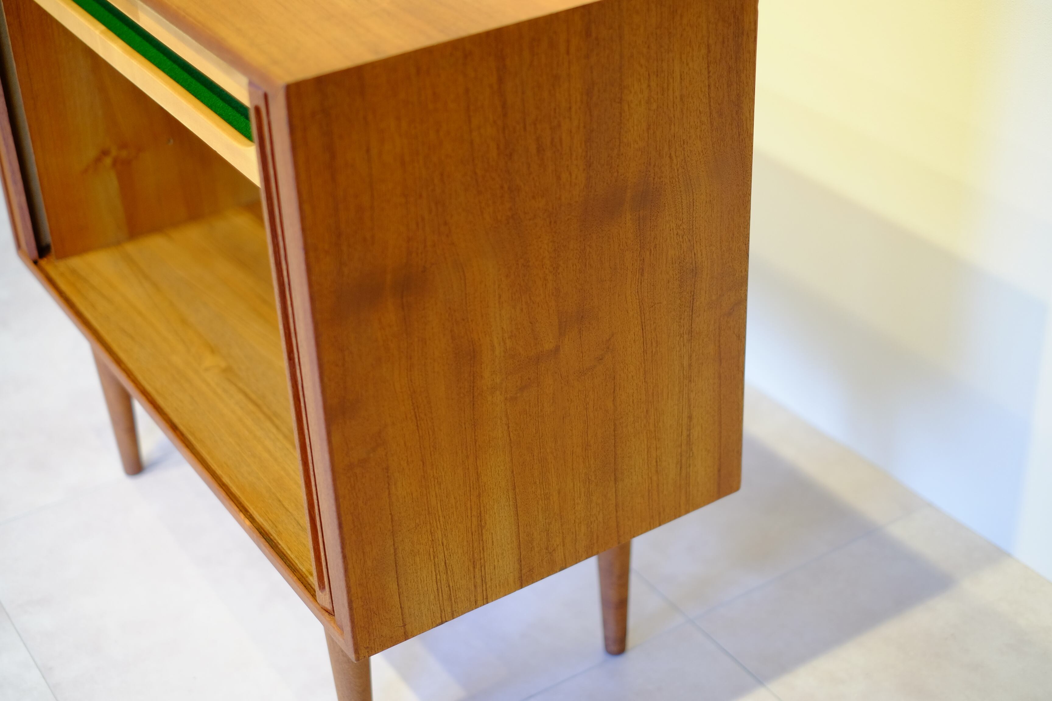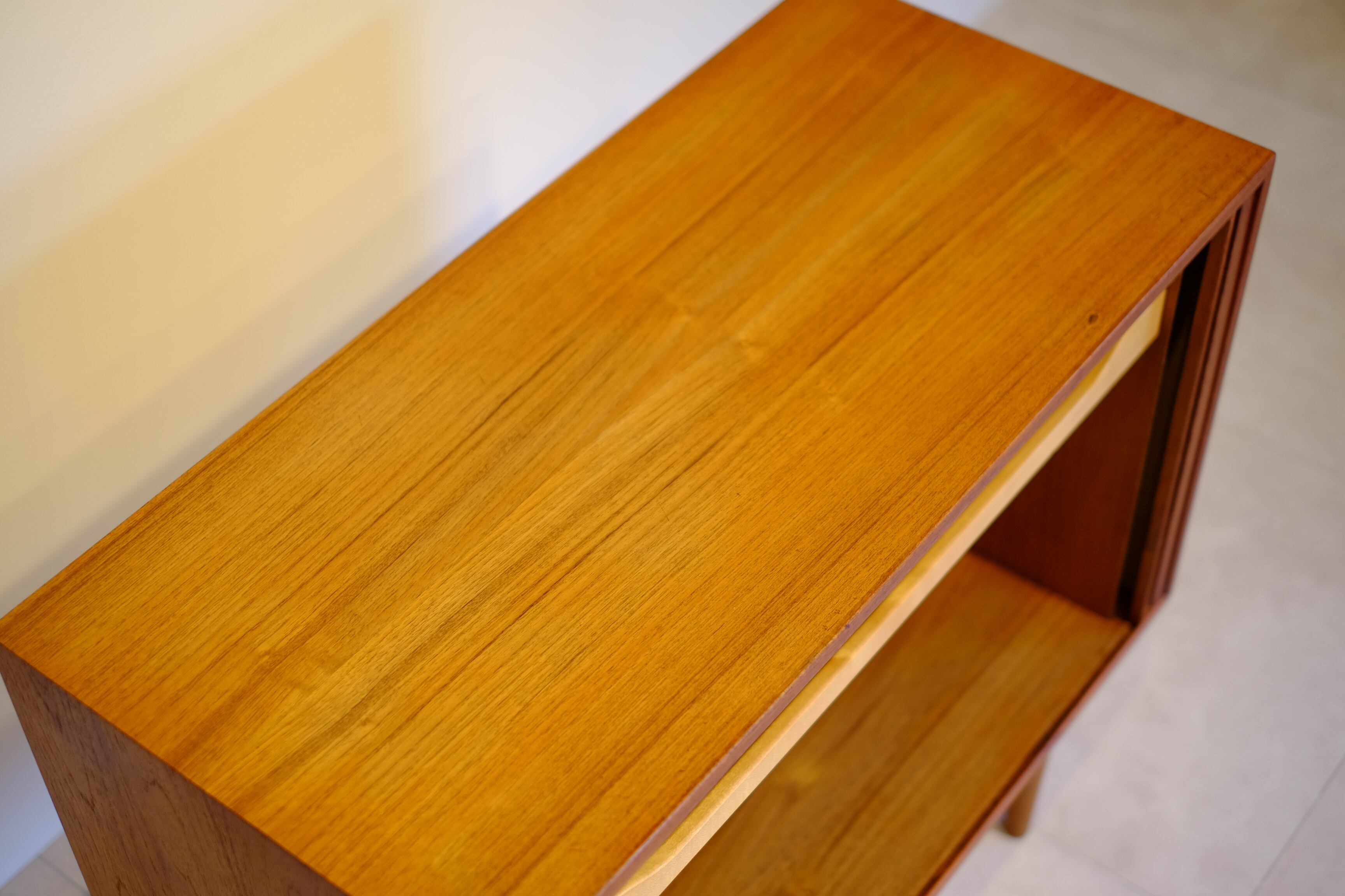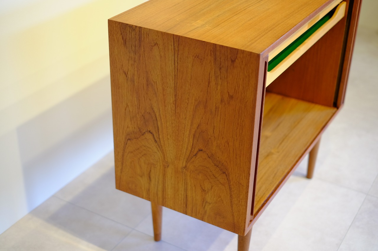 FM reolsystemと呼ばれるウォールシェルフシステムでも使われたデザインであり、こちらはそれを脚付きのキャビネットとしたものです。