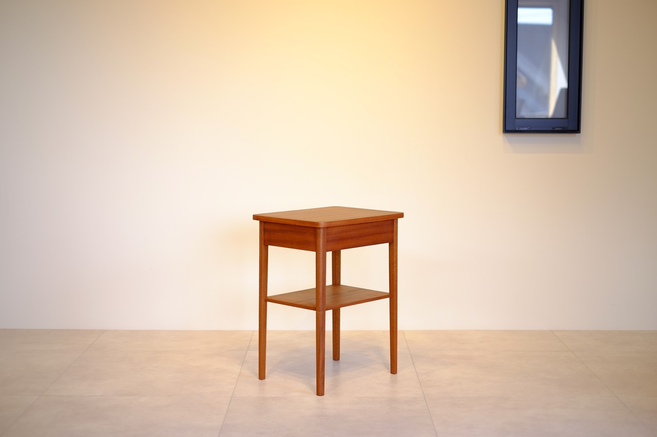 椅子やソファサイドに置いてサイドテーブルとして使ってもよいですし、観葉植物やフラワーベース、ランプなどを置いてアクセントとして使用するのにもちょうどよいサイズです。