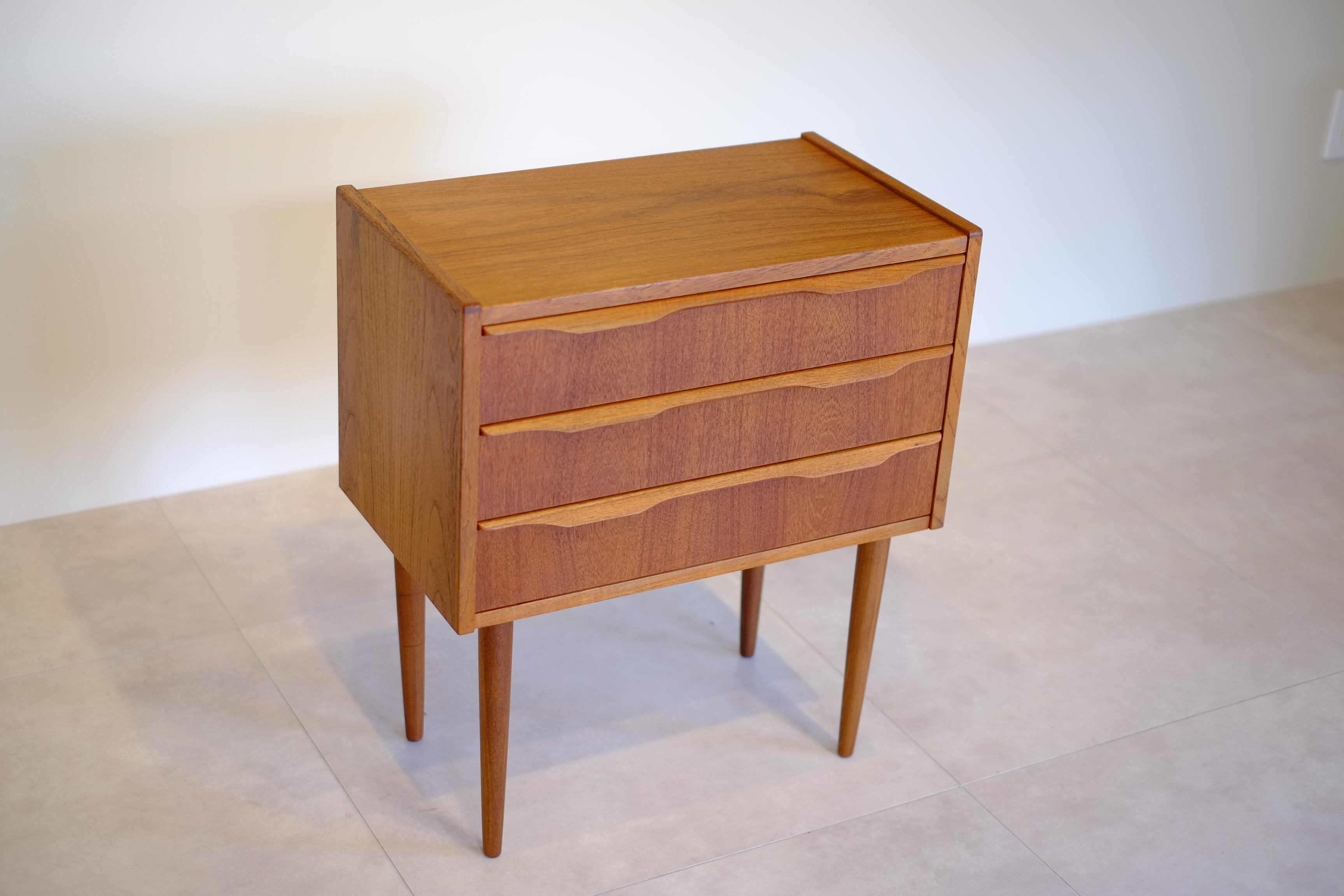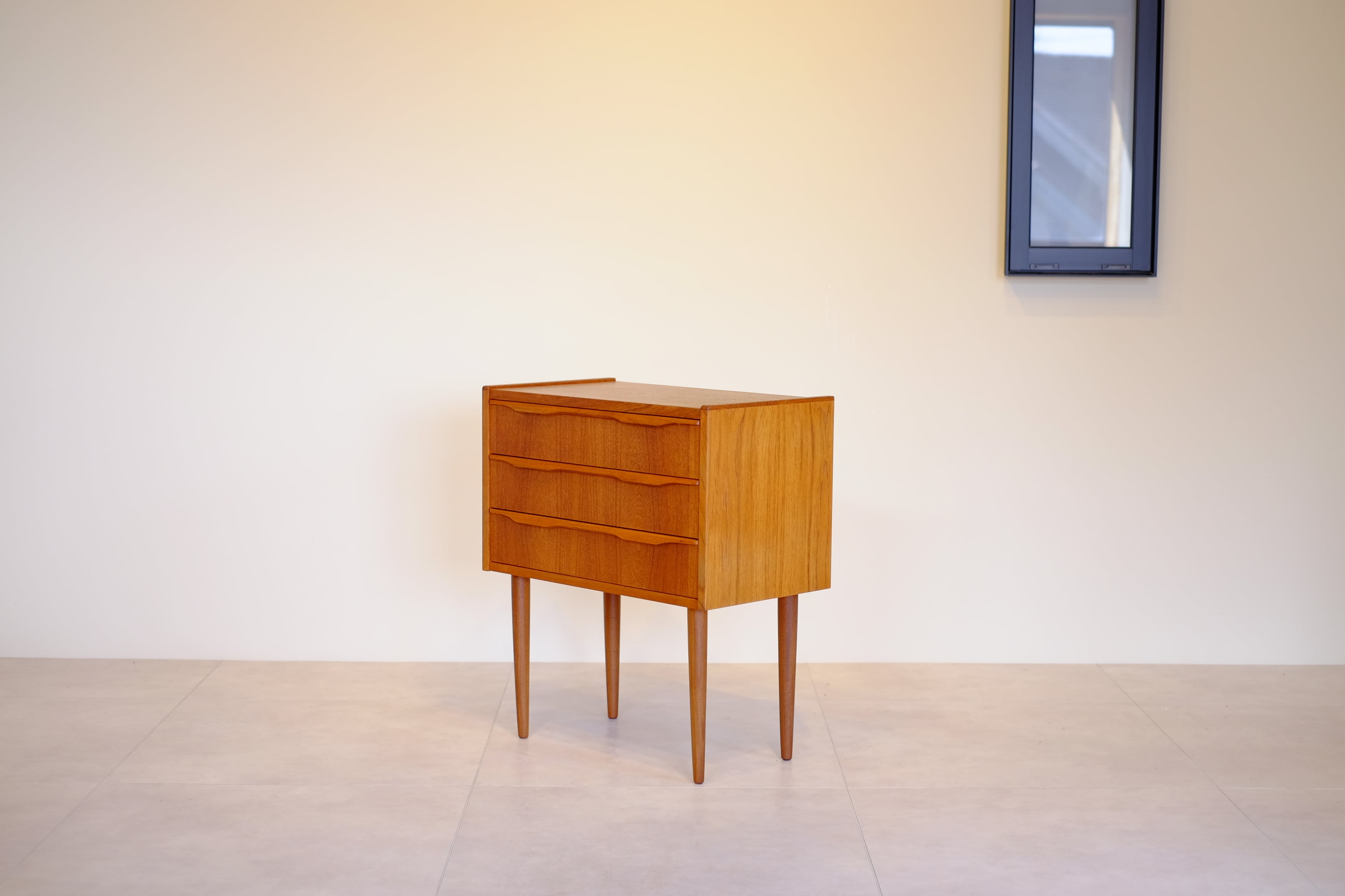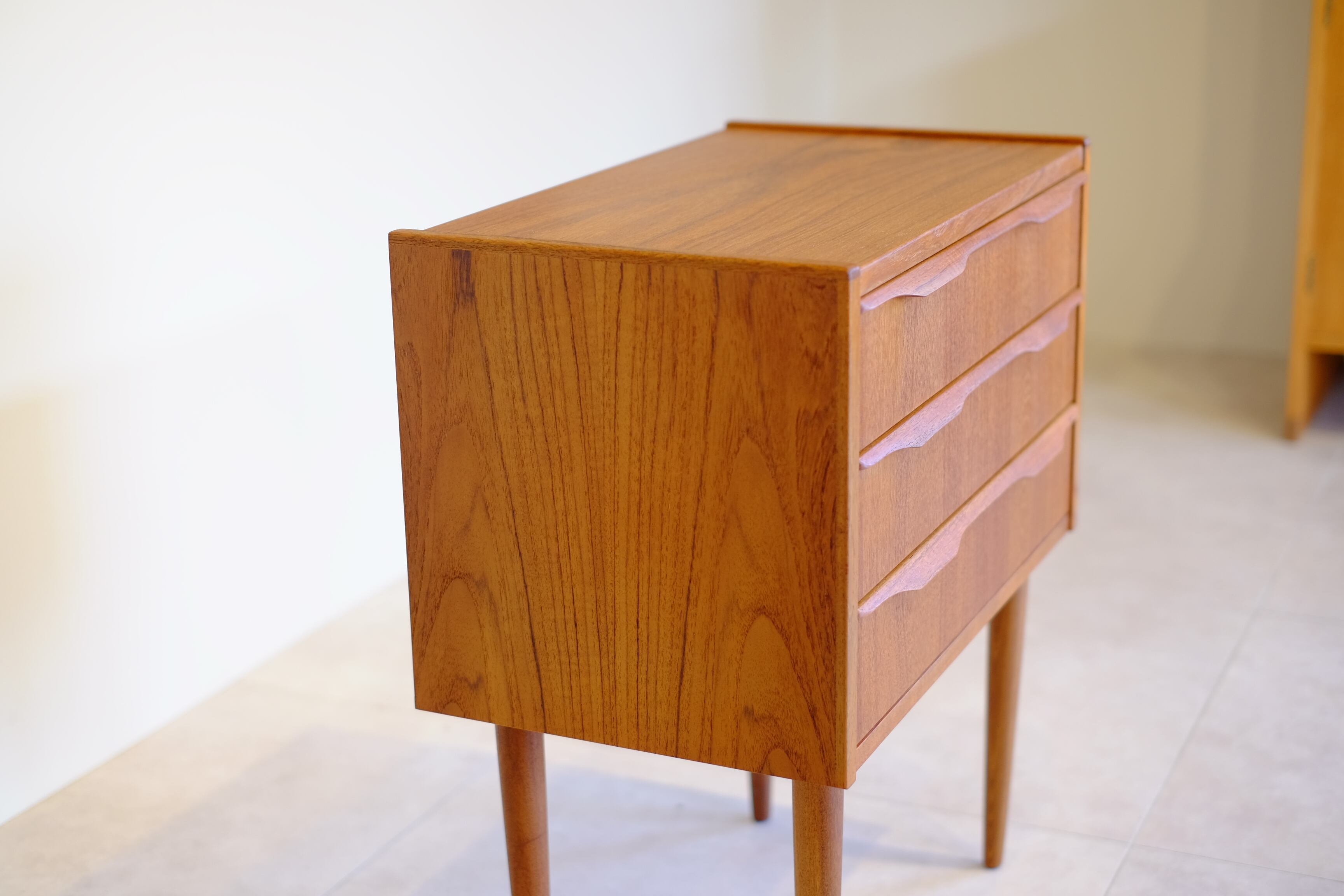 デザイナーの名前こそ付いていませんが、これぞ北欧ヴィンテージと思えるかわいらしいサイズ感の3段チェスト。