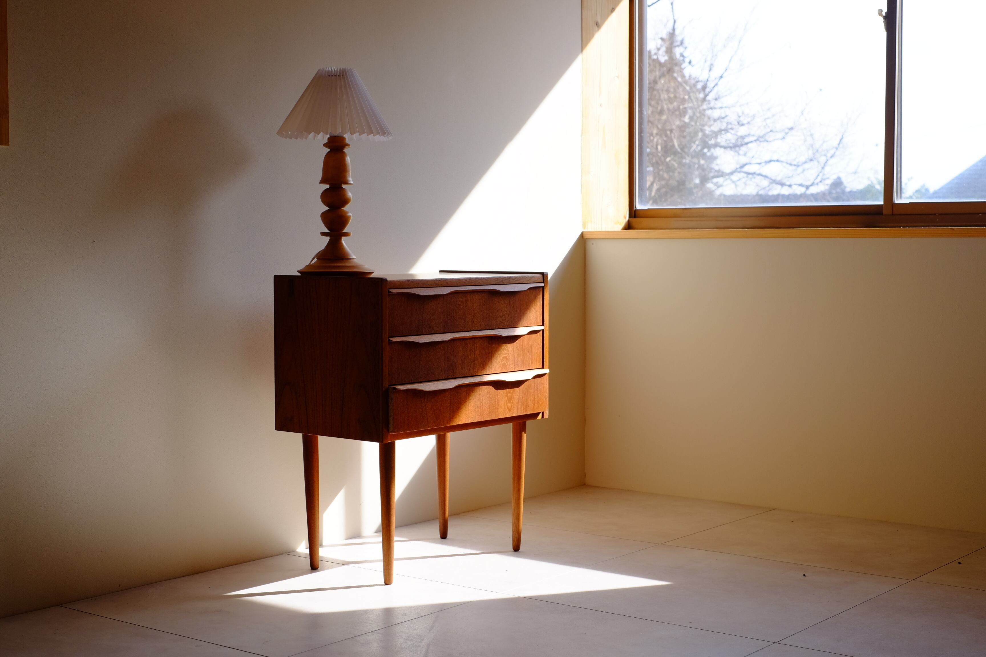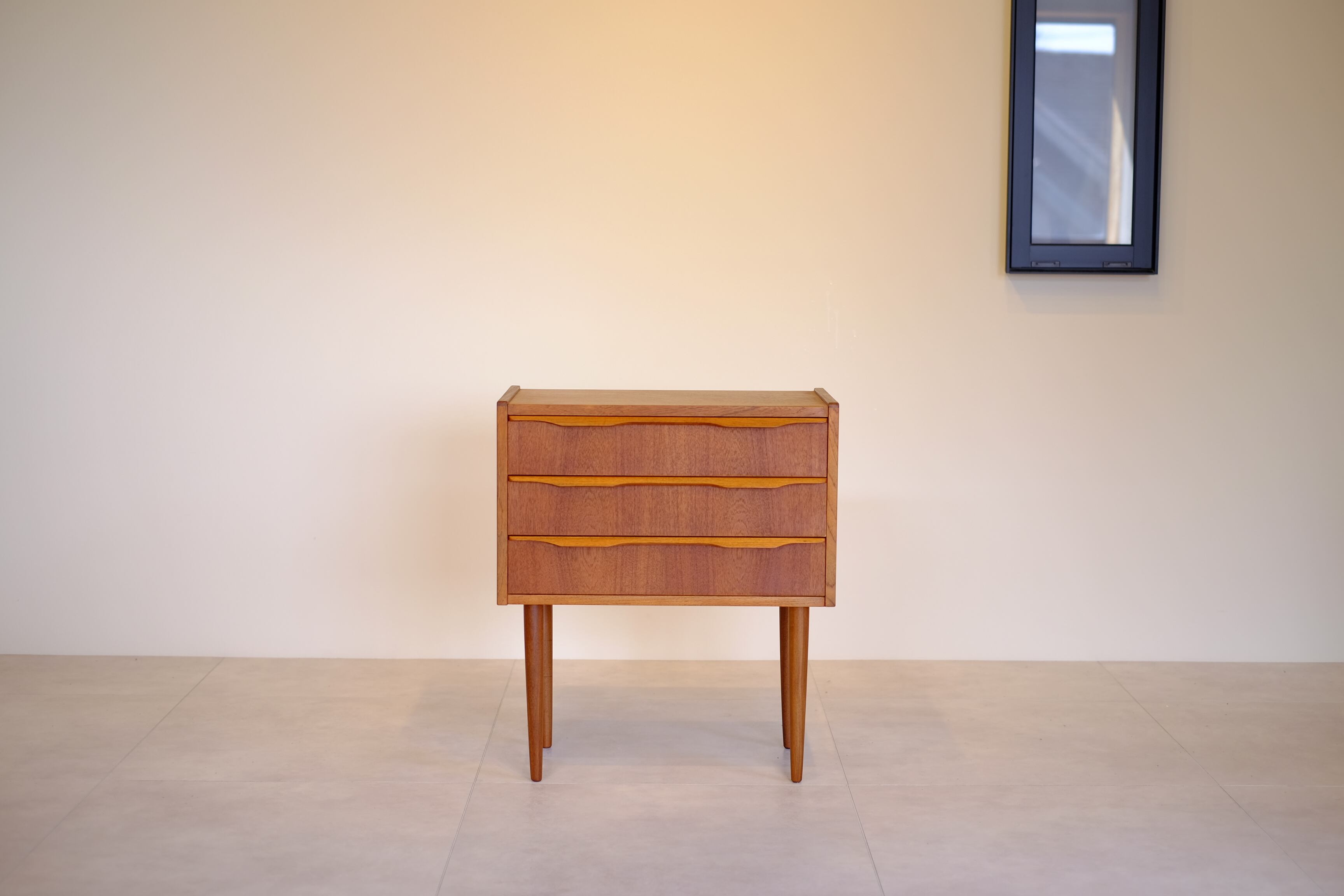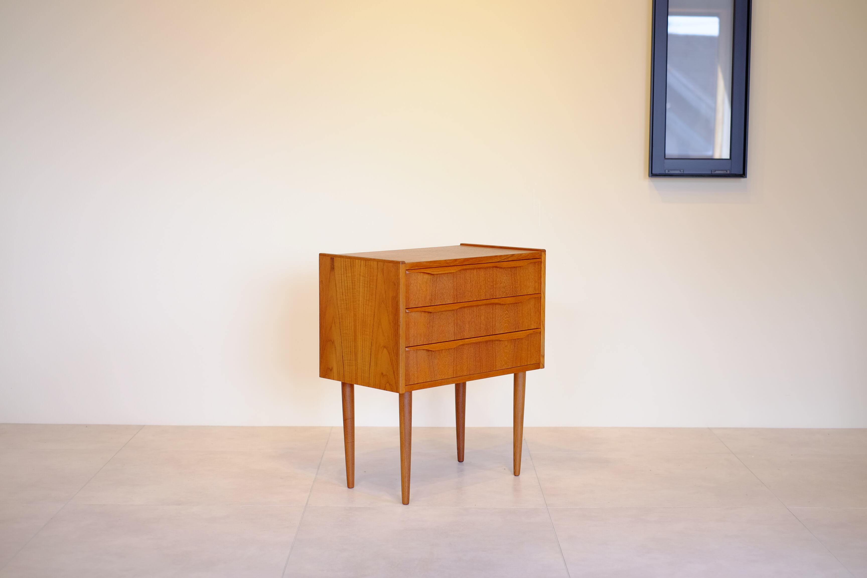 デザイナーの名前こそ付いていませんが、これぞ北欧ヴィンテージと思えるかわいらしいサイズ感の3段チェスト。